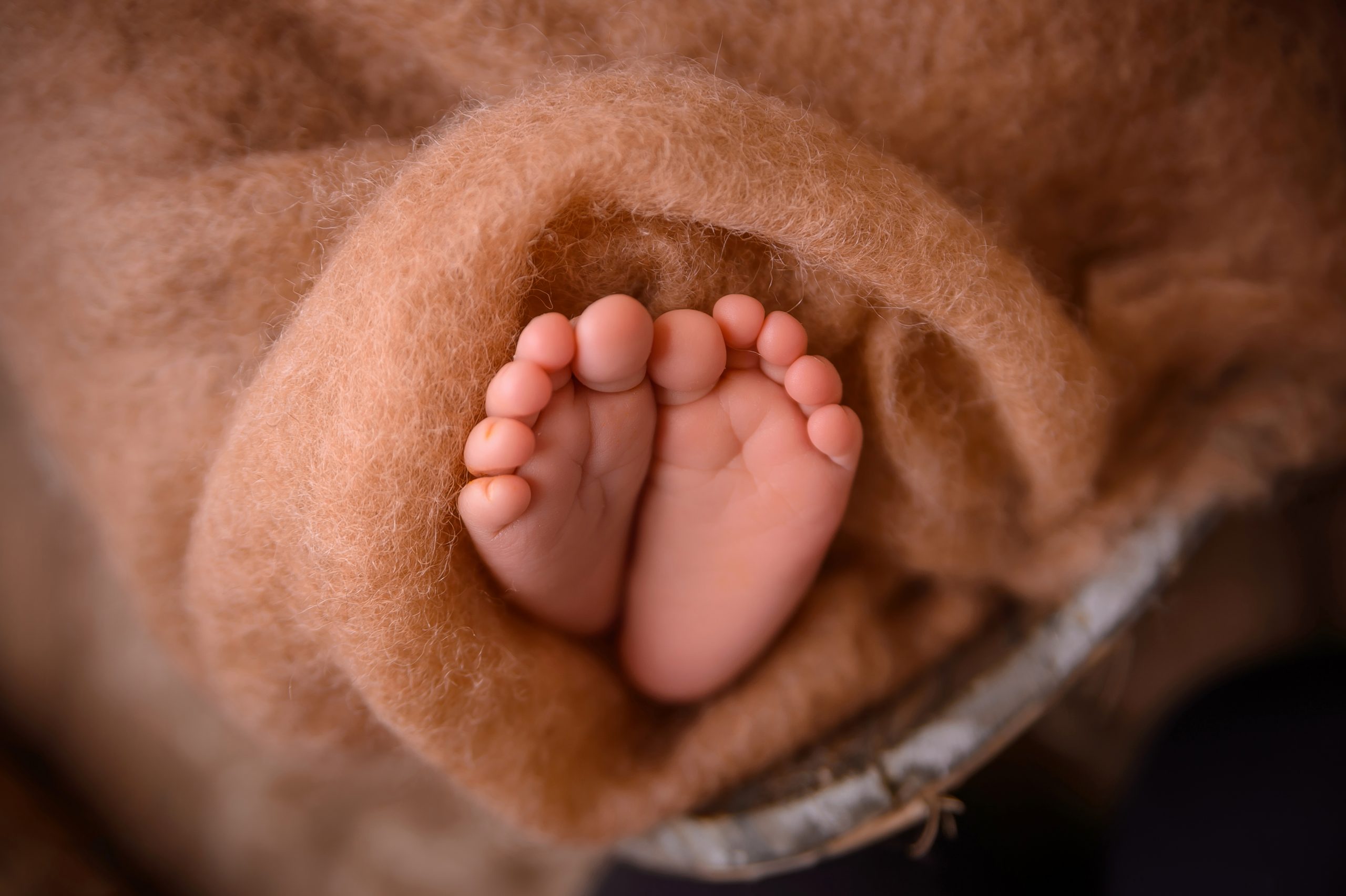 - babyshooting Füße in Fleecedecke braun Closeup